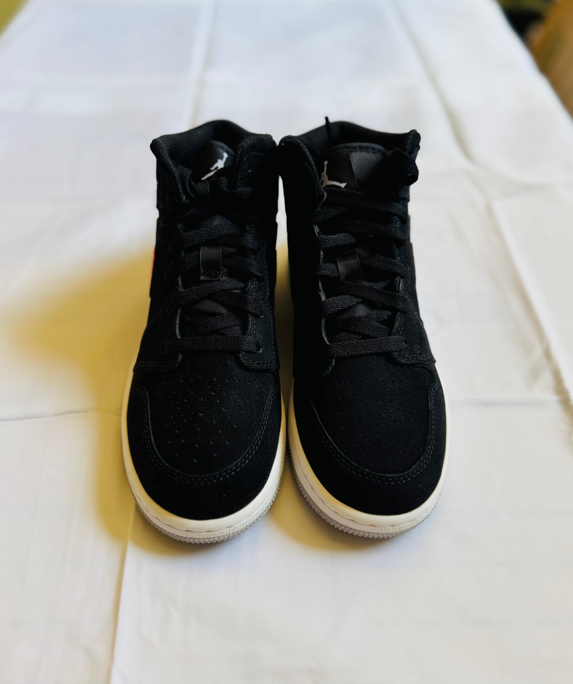 Designed in kids sizes, this Air Jordan 1 Mid starts off with a white leather base on the upper with beige/tan leather overlays for a nice contrast. Providing some pop is the addition of bright red on the laces, tongue tags, inner liner, Swooshes, and the Wings logos on the ankles. Yellow Jumpman logos on the tongues, white rubber midsoles, and black rubber outsoles round out the look on this grade school Air Jordan 1 Mid.
